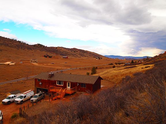 Take a look at the views from this raised ranch home on 6 acres in a convenient location just outside of Loveland and Berthoud! Family room has beautiful vaulted tongue and groove wood ceilings with views to boast! Two wood burning fireplaces both located on the main level in the family and living rooms. Newly built front porch and a deck off of the back to take full advantage of all the surrounding foothill views!