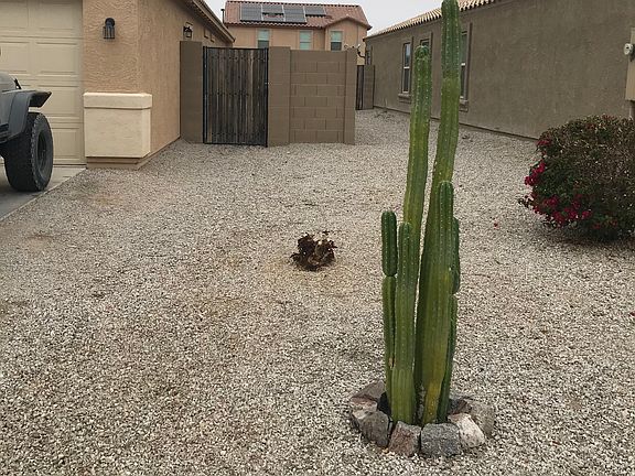 Great location with access to I-10, shopping, parks etc. Owner says monthly A.P.S. bill is $27 or less due to leased solar system which costs only $88 a month. Custom tile throughout home. Cultured Marble counter tops in both bathrooms. Stained Oak Cabinets. Lots of cabinet & counter top space in kitchen. Stainless steel sink in kitchen. Custom lighting. Custom blinds. Garage cabinets and workbench. Garage is wired for 115/220v. Extensive security system installed and transferable for only $50/mo.