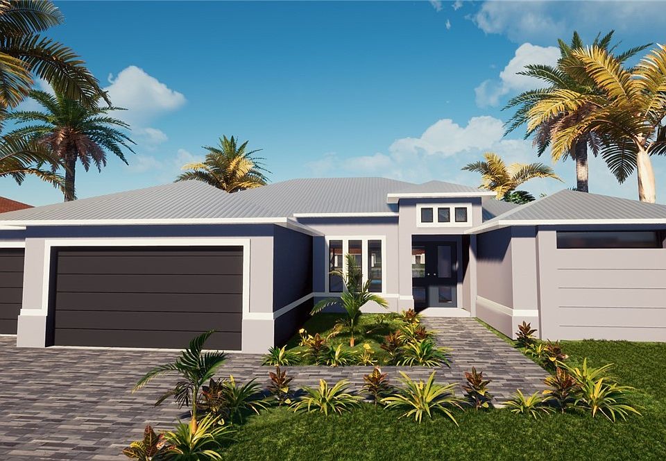 Rare New Construction!Bring your yacht to this fantastic location with gorgeous views of the largest intersecting unrestricted,deep water, direct Sailboat access to The Gulf of Mexico(no bridges, no locks)with some of the best fishing in the world,minutes to The Yacht Club.New Dock featuring full electric & Newly constructed seawall and room for your 80ft yacht!This home has been elevated out of the normal flood zone limits.This modern custom home has a sought after Metal Roof,high ceilings and large open floor plan,3 bed,3 full bath,extended 3+garage,den/office,large bonus room could convert to fourth bedroom/suite ,gourmet kitchen with large Butler pantry.Master suite with huge walk-in closet,his and her sinks,tray ceilings,and body jets in dual walk in open shower. Open your disappearing 90 degree sliding doors to Southwest Florida living,with expanded gathering space on your paved lanai overlooking your Custom designed pool & infinity spa with multi colored LED lighted water features, outside kitchen and bar. This home has it all, don't miss an opportunity to enjoy the sunny healthy Florida lifestyle in your new state of the art home!Call for info & take a virtual tour today!