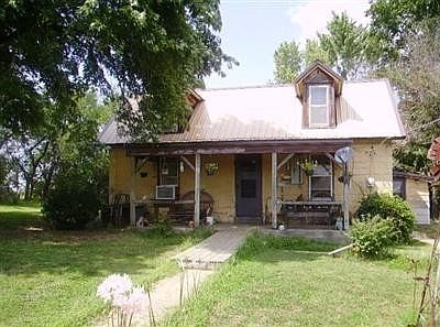 This 100+ yr. old home has a durable sandstone exterior and a metal roof that was installed in 2002. Besides the 2 main floor bedrooms there are 2 dormer rooms that have been used as bedrooms in the past. They are also great for storage. Home is in need of TLC. You can spend your evenings relaxing on your front porch which has a view of the large fishing pond. There are 14 cultivated acres, with the balance in pasture. There are several pecan trees. Mineral rights are intact and will transfer.