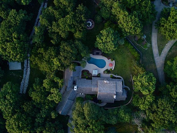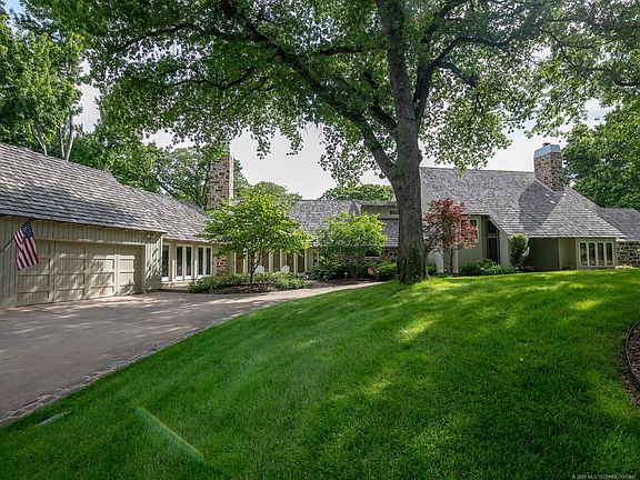 Jack Arnold design built on 2.35 acres (Jenks SE schools). Beautifully updated, open floor plan, spacious rooms, 3 fireplaces, hardwoods, chef's kitchen, office, great adirondack style, stone accents, new addition opens to saltwater pool and parklike grounds. Extra garage, firepit & pergola.