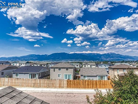 Welcome home to stunning Pikes Peak views and a fantastic location with easy access to the Colorado Springs Airport, Fort Carson, schools, and all the shopping and dining along the Powers Corridor. You're only 8 minutes to I-25 and 16 minutes to Downtown Colorado Springs! This well-appointed home offers a spacious fenced backyard and a thoughtful layout. Step inside to a large 7’ x 11’ foyer, perfect for greeting guests. The main level flows seamlessly through the 15’ x 15’ living room with a cozy corner fireplace and wall space big enough for your giant TV, into the 15’ x 8’ dining area with walkout to the 11’ x 10’ patio. The open 10’ x 10’ kitchen is designed for functionality and conversation, with plenty of prep space plus a nearby pantry and a tucked-away half bath for convenience. Upstairs, brand-new carpet (never lived on!) welcomes you. Two spacious secondary bedrooms share a full bath, while the private primary suite offers room for a king-sized bed and furniture. The suite includes a 13’ x 6’ walk-in closet, dual-vanity bathroom with linen storage, and a large soaking tub/shower combination. With its views, layout, and updates, this home is ready for you to enjoy. Schedule your tour today and make it yours!