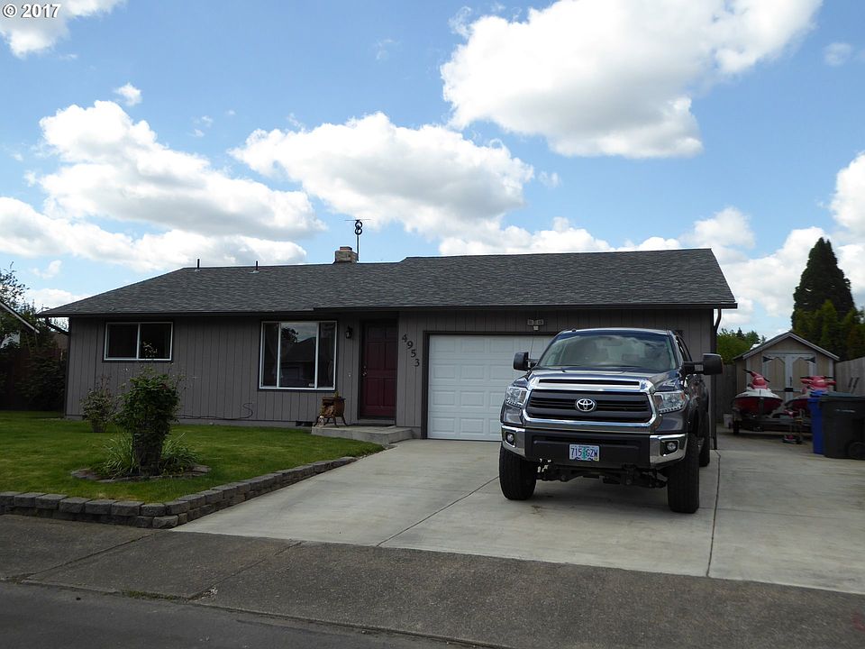 1 level ranch home backs up to church grounds, 3bdrm/1ba, lg living room w/brick fireplace, dining room w/slider to patio, kitchen w/island all appliances stay, master has 1/2 bath, heat pump installed 2017, wood/vinyl flooring installed in 2020. Full kitchen remodel in 2020. Master 1/2 bath updated 2022. new carpet installed in Master 2017, new driveway & RV pad 2016, new garage door, tool shed 2016, 6x12 man cave in garage. Large back yard.