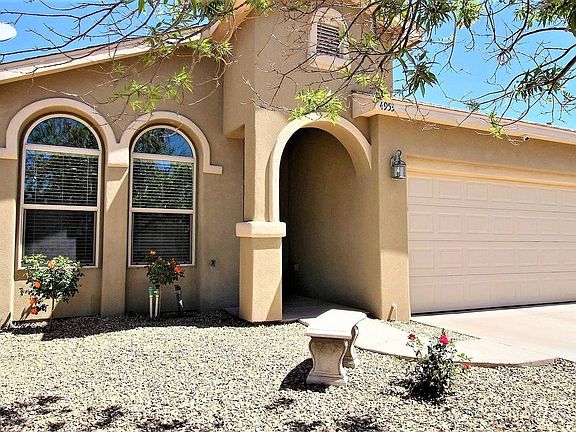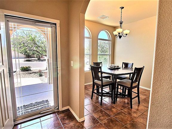 Elegant move-in-ready 1520 SqFt home in a desirable area. This great design and layout offer spaciousness, high ceilings in the living room, tile floors with carpet in bedrooms, light & warmth. This 3-bedroom 2-full bathroom boasts a spacious master bedroom, walk-in closets in 2 of the 3 bedrooms, a large storage room, window coverings installed throughout, and a neutral color palette. All bedrooms have ceiling fans, and mounted TVs. The laundry room is very spacious. This well-situated and well-maintained home with a covered patio is perfect for all your 4-legged friends. The backyard is fully grass landscaped while the front yard has an easy-care desert landscaping. Close to 70, NASA, restaurants, medical services, Red Hawk and Sonoma Ranch golf courses. It's a must see!