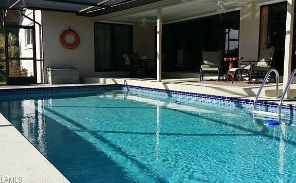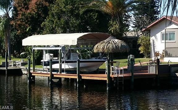Very nice Gulf Access Pool home with quick access and No Bridges! 4 bedrooms 2 Baths with almost 2200sf. Large open Great Room feel. Large dock with Chiki hut and covered boat lift. Great neighborhood in South Cape located between Yacht Club area and Cape Harbour. Close to beach, downtown activities and shopping. Cool off in the relaxing pool after a day of boating and fishing! Filet your catch at the fish cleaning table. Excellent neighbors! Brand new roof. Hurricane rated windows and Front door. Large garage fits full size vehicles.
