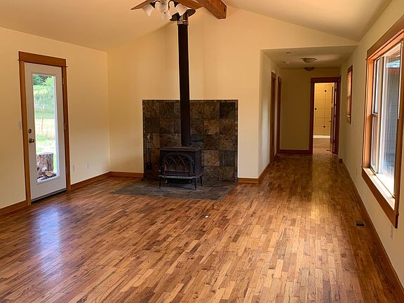 This one level, three bedroom, three bathroom home is located in Blue River, about 50 miles from Springfield. The house is a custom craftsman style and is situated more than three miles off the highway in a secluded meadow with stunning views. The property features creek access, gardens, fruit trees, multiple acres, and is also close to the beautiful McKenzie River. The 1,872 square foot home has hardwood floors, a wood stove, a large kitchen, and an indoor laundry room. There is a spacious master bedroom suite with two large closets, an en suite bath, floor-to-ceiling windows and deck access. A second (of three) large bedroom also has a walk-in-closet. You'll enjoy a ductless heat pump system, as well as an electric forced air heat system. A back-up generator insures comfort through a power loss. This home uses propane and electricity. There is a septic tank and well so there are no water and disposal charges. Tenant provides electricity, propane, disposal, as well as internet (Century Link is available in this area). There is a large enclosed garden with raised beds and fruit trees. The property owner provides landscaping/yard care, but may consider lower rent if a tenant wished to do this themselves. Please note that this property is NOT appropriate for livestock or commercial cannabis growing. tenant does not have access to the out building. Rental includes about one acre of land. Storage of boat and/or RV permitted only with property owner approval. No smoking, vaping, or cannabis use indoors. Up to two pets allowed with additional security deposit of $300 each. All pets must be spayed or neutered and current on vaccinations. McKenzie Schools. Monthly rent $2,650, Security deposit $2,650. Application fee $40/adult. Professionally managed by Ducks Property Management, Amanda Wooldridge, Licensed Property Manager. Equal Housing Opportunity. Tenants pays propane, electric, disposal, and Internet. Landscaping provided.