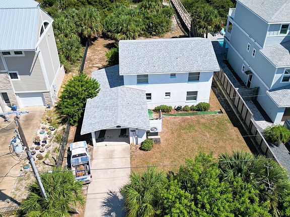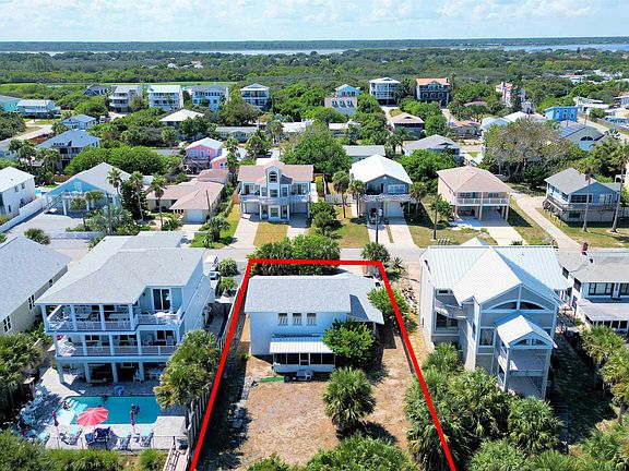 DIRECT OCEANFRONT!!! NOT in a flood zone, HIGH AND DRY, No CCCL to worry about. This concrete block bungalow is SO SWEET and awaits its new owners. You won't find many oceanfront homes for this price!! You're allowed to build your own private beach walkover like the neighbors have and you're even allowed to build your own pool with no CCCL restrictions to worry about! This house has the perfect location in the perfect neighborhood with NO short term rental restrictions to worry about!! This could be the perfect investment property for someone looking to generate great rental revenue with a very good cap rate. You also have the benefit of lower county taxes. STR's are not an issue here like they are in St Augustine Beach. Lower taxes, high and dry, and you can operate an Airbnb... What's not to love??!! This was Tom Petty's old street and Tom had great taste!! Drop in a pool and private boardwalk and you're in business!! House is a throwback but it's concrete block and maintained well!