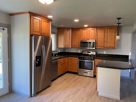 Beautiful completely remodelled , single story, 4 Bdrm , 2 Bth house with central gas heat and air, all new kitchen with stainless steel appliances and granite countertops, Hardwood floors, LED fireplaces in living room and master bedroom, Large soaking tub in main bath,inside laundry and large fenced yard with fruit trees , storage shed and room for a garden. One year lease with $1900 deposit Small dogs accepted with pet deposit Please call or text to make an appointment Owner pays for trash, Tenant pays for all utilities(water,gas,& electricity