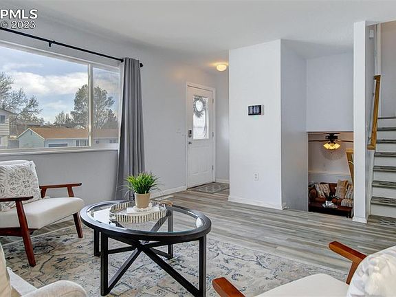 BEAUTIFUL Tri-level 3 bedroom, 2 bath 1 car garage home in highly desirable Homestead! There is GREAT energy from the entry to the living room which flows into the dining area! Head upstairs and check out the two spacious bedrooms that share a LIGHT and BRIGHT remodeled full bath!! The lower level has a charming family room, bedroom, and bathroom for guests or family members who need their own space! The SPACIOUS backyard features a large concrete patio for entertaining and a great opportunity to personalize with your own touch! This classy home is easily accessible to Academy or Powers corridor shopping, schools and that AWESOME Colorado Lifestyle. Other amenities include: A/C, humidifier, LVT throughout, vinyl windows, low maintenance vinyl siding, large shed, smart doorbell, and many more! Come make this SPECTACULAR HOUSE YOUR HOME!!!
