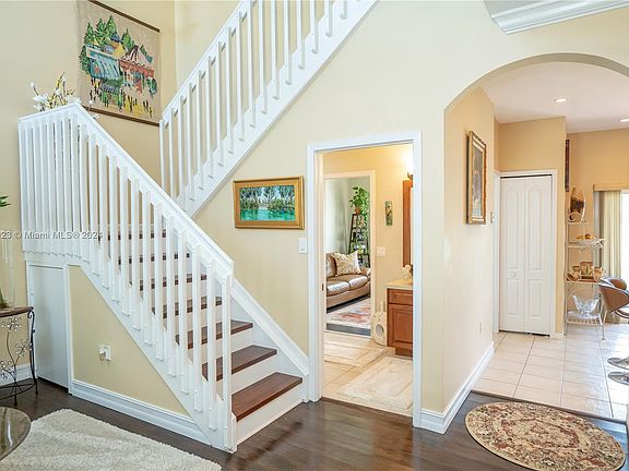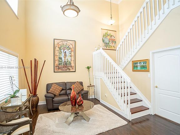 Welcome to this impressive 3-beds, 3-baths townhome in the admired Somerset Cove at Vizcaya. Pride of ownership is clear in this precisely maintained dwelling. Home features 1-bed & a full bath on the 1st floor, tile & laminate flooring throughout, matched by elegant crown molding and vaulted ceilings. The kitchen and baths have been updated, and a walk-in custom closet with rods, shelving, and built-in drawers, stainless steel appliances grace the kitchen, and the screened back patio awards a resting outdoor space. Hurricane impact windows & doors ensure security and peace of mind. The community offers a great family setting with 24-hour roving security, kids playground, and a pool. Freshly painted facades and new roofs throughout the Somerset Cove section enrich the community’s charm.
