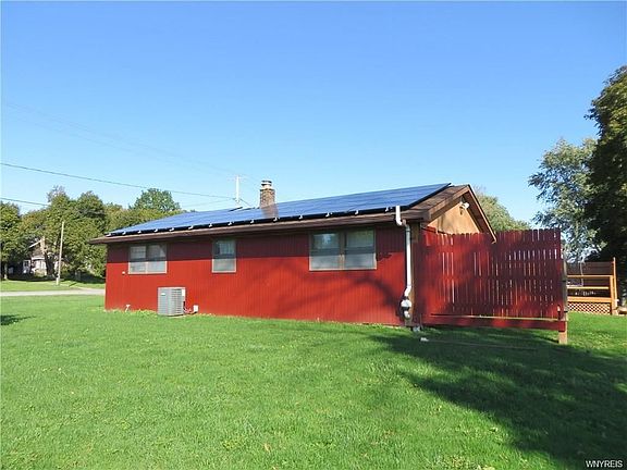 Location - Location - Location! Rustic 3 bedroom Ranch in Starpoint Schools situated on 1.2 acres. This home features Liberty Solar panels (2016) for crazy low electric bills! Popular open floorplan boasts 3/4" engineered hardwood flooring, huge eat in kitchen, corner wood burning fireplace, first floor laundry. Living room has beautiful bay window. The Master bedroom has a slider to backyard. 2 car garage is insulated and finished to create a great work space. No rear neighbors in the 565' deep lot (except for cows). There is a massive 2 tier deck and a garden shed. Boiler and Central Air approx. 2008, Tankless hot water system 2017. Septic system approx. 2008-09. Concrete driveway w/turnaround. TLC and new bedroom flooring will make this home shine again! Property being sold As Is. Due to COVID-19 ...showing restrictions in place until NYS executive order is lifted. Showings (with restrictions) will be begin on Saturday May 9th. Offers, if any, will be reviewed after 5PM Sunday May 10th.