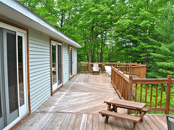 Cabin, Ranch - Gaylord, MI PRIVATE SETTING, 4 BR, 3 Bath home on 1.83 wooded acres features great room with fieldstone fireplace and vaulted ceiling, hickory cabinets in kitchen, spacious deck to enjoy the wildlife, full finished walk-out lower level with family room, bedroom, bath and exercise room as well as a 3 car attached garage!