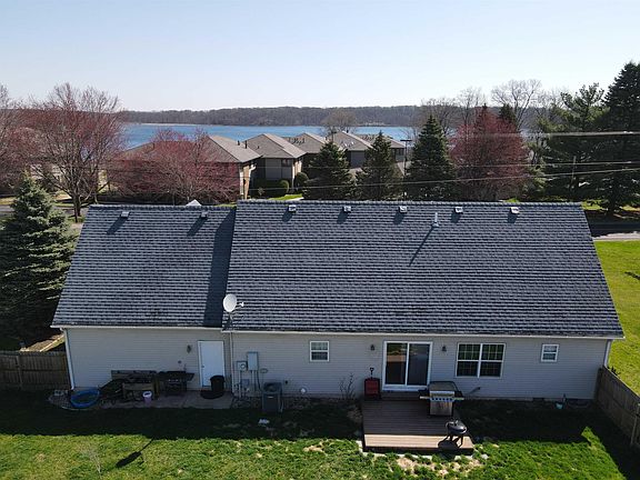Views of Lake James from the font porch plus association beach and dock space on Jimmerson lake! 3 Large Bedrooms, 2 and a half bath and a fenced yard! Enjoy the beach and the lake in this golf cart friendly community! The additional upstairs living space is great for entertaining friends or kids!