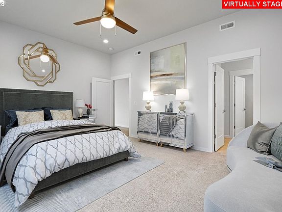 One of 2 homes left in this subdivision! The Evergreen floorplan is a spacious & well-designed layout, offering four bedrooms + a bonus loft area. The main living area features a great room with a gas fireplace, creating a cozy and inviting atmosphere. It is conveniently situated adjacent to the dining area and kitchen, allowing for easy interaction and entertaining. The kitchen is equipped with an island, providing additional countertop space for meal preparation & serving. The kitchen also boasts desirable features such as a pantry, quartz countertops, and soft-close drawers, enhancing both functionality and style. The Great Room opens up to a covered patio, allowing for seamless indoor-outdoor living. The patio overlooks a fully fenced and landscaped yard, which is irrigated for easy maintenance. The primary bedroom is generously sized and includes large walk-in closet, a double sink vanity in the en-suite bathroom features a soak tub & separate tile shower. The utility room is conveniently located upstairs near the bedrooms, making laundry chores more accessible. To ensure comfort during hot summers, this home comes with A/C. Additionally, this property is situated close to the Cambridge Pool, which is just one block away. Interior photos are of another finished home with similar finishes & features, NOT ACTUAL HOUSE. Home is 100% complete.