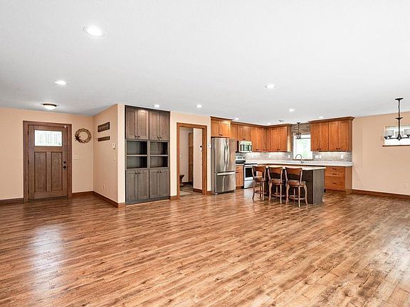 One level living at its finest! Quality built by Ken Huikka, this nearly-new construction home sits on 5 acres of beautifully wooded land in Hermantown. Featuring an open concept, this home includes 3 bedrooms, 2 full bathrooms, and a finished heated garage. The master bedroom comes with a walk-in closet and ensuite bathroom with double sinks. Enjoy a spacious kitchen with quartz countertops, stainless appliances, and quality cabinets. The home is equipped with in-floor heating, electric baseboards, and mini-splits. It also boasts new Marvin windows with custom drapes, LVT flooring, and beautiful built-in cabinets in the living room. Hurry, won’t last!