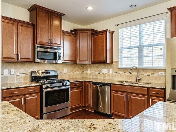 Minutes to RTP, shopping, schools and parks. This home is move in ready and better than new! Open floorplan brings in Lots of natural light, hardwood floors on the main. Oversized kitchen with spacious island, granite tops with tiled backsplash. The large master suite with a generous walk-in closet and spa bathroom, separate garden tub and shower. Office / study on the ground level with a full bath. Community has pool and playground.House comes with refrigerator and washer,dryer.
