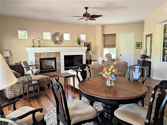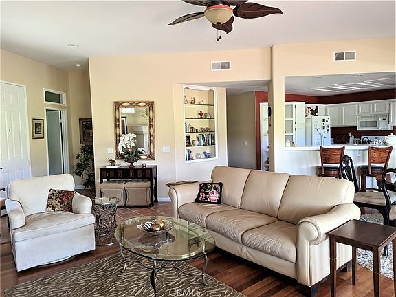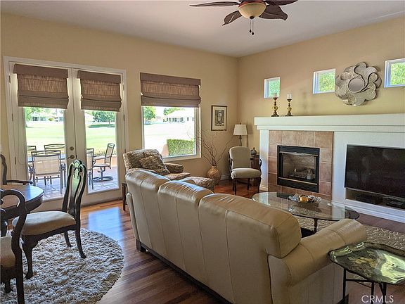 Beautiful home located in Sun Lakes Country Club (North), a 55+ active adult community. Home is in turnkey condition on the interior with wood and tile flooring throughout the high traffic areas. 2 large windows and a French door looks out to the patio and golf course. The property overlooks the 10th fairway on the north course. There are spectacular views of one of the lakes, the golf course and the San Gorgonio Mountain range. The patio is ideal for entertaining with a large aluminum patio cover and saltillo tiles to give it that classic rustic look. The Sun Lakes community features 2 golf courses, pro shop, 3 clubhouses, 2 restaurants, bar and lounge. Tennis, swimming pools (1 indoor), spas, fitness centers, bocce ball, pickleball and more. HOA dues include cable tv and internet.