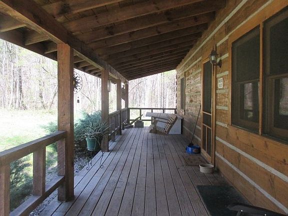 Beautiful 1.5 story country log home on 12 Acres already fenced for your horses. Gas or wood burning fireplace, Amish built kitchen cabinets, new carpet, pergo floors, new tile floors, a beautiful 3 tier deck are just some of the amenities of this secluded home. Extra nice 2 car detached garage with concrete floor, wired for electric(not hooked up) workbench. Small horse barn with tack room. Approx. 3.5 acres pasture with pond and the rest is wooded for hunting or hiking through the woods. Lots of wildlife!