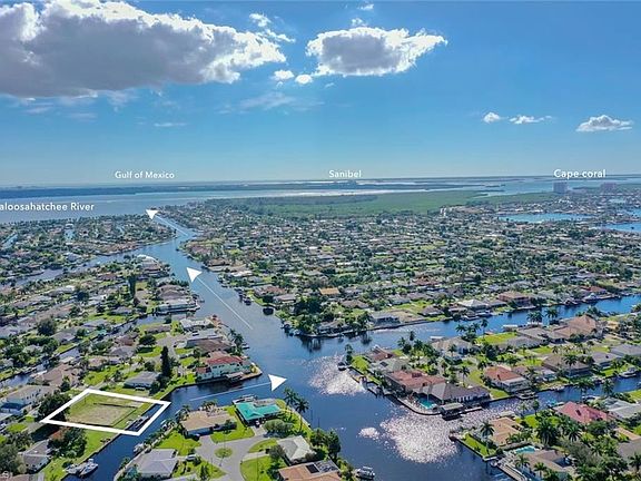Rare New Construction! Bring your yacht to this fantastic location! Gorgeous views of the largest intersecting unrestricted deep water, direct sailboat access to the Gulf of Mexico(no bridges, no locks)& some of the best fishing in the world minutes to the Yacht Club. New Dock with electric & Newly constructed seawall. This home has been elevated out of the normal flood zone limit. You'll love this High ceilings & Highly sought after open floor concept,3 bed,3 full bath,extended 3+garage, den/office, large bonus room could convert to fourth bedroom/suite, gourmet kitchen with large Butler pantry. Master suite with huge walk-in closet, his and her sinks, tray ceilings ,and body jets in dual walk in open shower. Open your disappearing 90 degree sliding doors to Southwest Florida living, with expanded gathering space on your paved lanai overlooking your Custom designed pool & infinity spa and 2 water features with multi colored LED Lights, outside kitchen and bar. This home has it all! Don't miss an opportunity to enjoy the sunny healthy Florida lifestyle in your new state of the art home! Call today for info & a virtual tour!