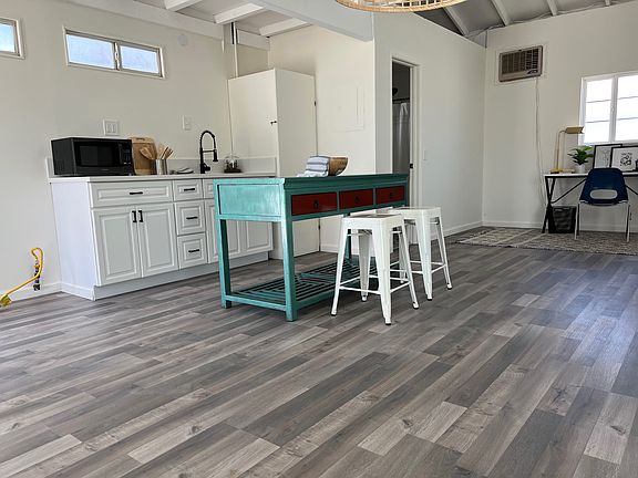 Sky high cielings on this one bedroom recently renovated property. Newly redone bathroom and kitchen and floors. Open floor plan and great natural light. Private driveway and patio, quiet neighborhood. 6-12 month lease. Flat fee for utilities $175.00