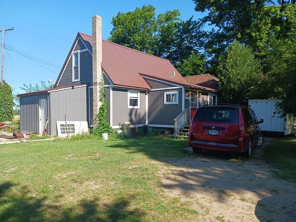 Nice starter home in the country with 4 bedrooms, 2 full baths and Michigan basement with lots of room, newer furnace in 2019, newer steel roof in 2020 and newer hot water heater in 2020, 3 bedrooms down and a large 14x15 bedroom up. 1,5 acre lot with older buildings for farm animals and lots of fruit trees.