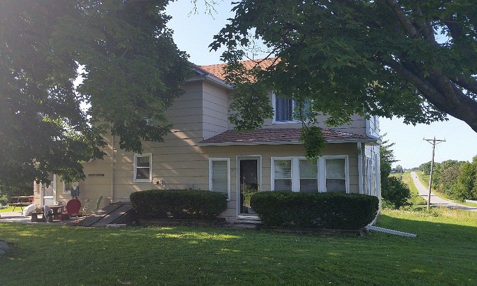 4.5 acre acreage with trees on pavement just south of Newton on the Reasnor road. Remodeled interior with hardwood floors. Large eat-in kitchen opens to den/family room. Enclosed side & back porches. Laundry on main. Newer bath on main. 2 very large bedrooms on upper level plus landing. 20 x 30 detached garage & single detached garage. Includes refrigerator, stove, dishwasher, washer & dryer. Newly painted exterior.
