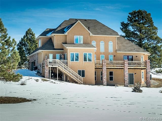 Gorgeous Custom Home in Highly Desired Sterling Tree Farm Community! This Estate has over 5 Acres of Private Natural Wooded Area! Gourmet Kitchen with Stainless Steel Appls & Granite Countertops! Hardwood Floors! Open Floor-plan! Large Windows offering Natural Light & Mountain Views! New Interior Paint! 3 Gas Log Fireplaces Including one in the Main-Floor Master Bedroom! 5- Piece Master Bath with 16 Jet Jacuzzi! Large Backyard Deck & Sun-room with views of those Colorado Sunsets! Full Unfinished Walkout Basement! Central Vacuum! New Central A/C! Over-sized 3 Car Garage! Washer/Dryer on Main Level! Zoned for Horses! New Well Pump Installed! This Home has it All, Including Wildlife at your Doorsteps!