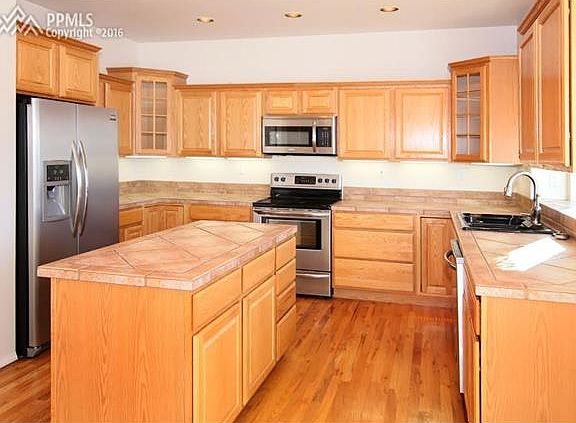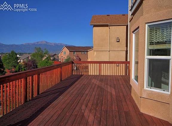 Very spacious home, with a huge deck and huge covered patio, excellent condition, move-in ready, master suite with sitting room, master bath with 3 shower heads stall, separate bubble tub. Top quality electrical throughout, including exterior canned lighting above garage door and on covered patio, fireplaces in family room, rec room and master bedroom, beautiful view of front range and pikes peak, no maintenance stucco exterior, kitchen with pantry, island and stainless steel appliances including the refrigerator. The wet bar area in the walk-out basement rec-room is just great. Speakers for sound in master bedroom, family room and rec room. Water heater was replaced last March. The front room is really a"flex room" and can be a formal living room, or a formal dining room or an office, or a library, or a music room... The master bedroom sitting room could also be an office.