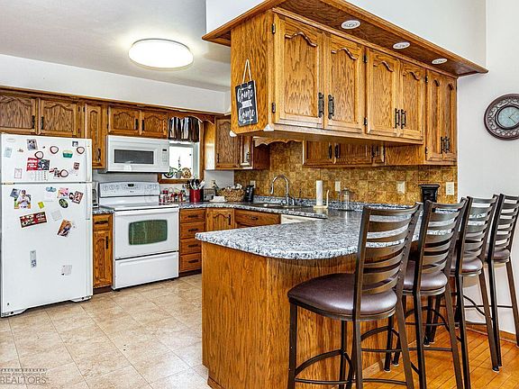 Cute little Hobby Farm! This 1 1/2 story home features 3 bedrooms and one open loft room up. Main floor laundry/mudroom. Spacious Oak kitchen with snack bar, formal dining area. Hardwood floors in living and dining areas. Situated on just under 2 acres with a double stall garage. Home has metal siding. Small building currently used to house goats with fenced goat pen. Take a look today!