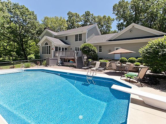 2.45 acres on one of the best lots in town. This 4300 sq ft home features a pool and a pond! Assessed at 660,000 the savings is your's! Come in and make this house your home. There is plenty of excellent space in this home. All the bedrooms have excellent size. One the first floor you'll find a huge kitchen with island. Dining is available in the kitchen or separate dining. There's a sun room with slider's to the maintenance free deck that overlooks the pool and pond. This setting is very private. On main floor you'll also find family room, living room, office and mud/laundry room. On the second level are 4 huge bedrooms include master suite with huge closets. The lower level has a wonderful bar area and rec room