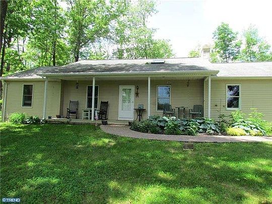 EASY LIVING!!!! Here is your chance to own this charming and very private ranch in Bucks County!! Lovely home with 3 bedrooms, 2 baths is located in a quiet and rural area. The eat- in kitchen has extensive counter space great for prepping meals and entertaining guests. A skylight in the kitchen adds loads of additional natural light. The Master Suite has a large whirlpool soaking tub. Two other bedrooms, a second full bath, and a laundry closet complete the main body of this home. An oversized 2 car garage has plenty of room for extra storage or a workshop. The full basement also provides tons of room for storage and has a woodstove that could be used for whole house heating. This property would make a great get away from the hustle and bustle!!!