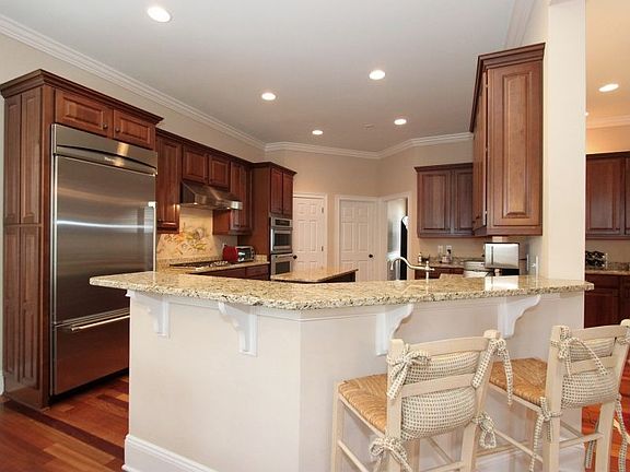Plantation style home. Two front porches overlooking a pond and the sound. Fabulous landscaping. Home has many upgrades. Brazilian hardwoods in foyer, powder, dining, family, kitchen, breakfast and owner's suite. 10' ceiling on first floor and 9' ceiling on 2nd floor. Kitchen with cherry raised cabinets, granite countertops, thermador appliances including 5 burner gas cooktop, electric wall oven, built-in refrigerator, movable kitchen island. Open bar area in family room. Breakfast area with bay windows and family room with shelving and buil-in storage cabinets. Large screened porch overlooking a beautiful landscaped yard and pond. Owners suite on first floor with sitting room and beautiful baths with granite countertops and whirlpool bath, shower and 2 walk-in closets. 4 additional bedrooms upstairs plus media room.