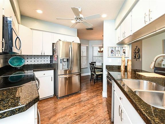 Want to live in town but want your privacy too, then this is the house for you! A fabulous 1/3 acre lot with a private fenced back yard. All new laminate flooring throughout this immaculate 3 bedroom 2 bath pool home. New plantation shutters in family room and living room. Kitchen has granite counters, with canned lighting, large walk in pantry, tile backsplash, breakfast bar, corner pullout shelves, & reverse osmosis system under sink. Eat in area overlooks the pool & lanai. Family room is open to kitchen, perfect for entertaining. Split plan has two bedrooms with walk in closets and bath on one side of home and master on other. Huge Master suite with walk in closet and master bath with hard surface counters and dual sinks. The covered lanai and heated pool are perfect for relaxing, or enjoy a bon fire in your own private tropical oasis. So many features and benefits of this home: Laundry room has cabinets and sink, pool heater 2014 & pump 2018, new flooring 2018, new screens lanai 2010, safety film on all windows, gutters, and irrigation system.