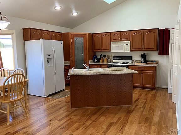Easy living in this ranch-style home in the convenient Eagleridge area. Everything on one level but room to expand in an unfinished basement, this features hardwood floors throughout the main level, vaulted ceilings and a skylight. The convenient kitchen has a center island with granite, pantry, eating area and all appliances stay. Enjoy the warmth of the living room fireplace and cool with central a/c. The backyard is fully fenced. Front and back are handicap accessible or ramps can be dismantled. This is a terrific location near shopping or highways for commuters.