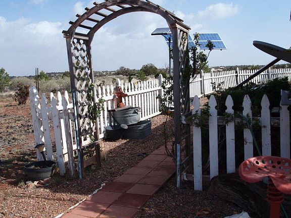 Great Lot with privacy and a 310 ft. deep well. Orchard and trees are irrigated. Extra mobile used for storage with another 2 tool sheds for storage as well. RV septic hook up. This off grid property has beautiful views. Sparse on neighbors, but lots and lots of privacy and peace and quiet. Windmill brings water up from well to the 1500 gallon water storage tank. Home has a generator for cloudy days. There is a small irrigated orchard and rose bushes, an insulated food storage shed. Home has a propane refrigerator and a wood stove. The small tractor mower and trailer stay with the home. There are 3 tool sheds on the property. Owner may carry with 20% down.