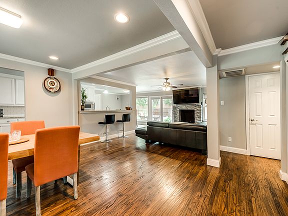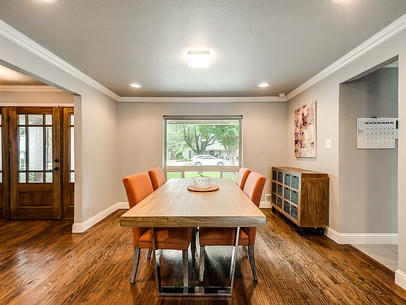 Enticing 4-BR 3.5-bath gem sprawling w light & bright open concept exquisitely remodeled & priced to sell! Situated in highly sought after Inwood North Estates & conveniently located in the prestigious private school corridor of North Dallas. Boasting w lavish hand scraped wood flooring & crown molding throughout main areas. Stylish FP in spacious LA. Opulent custom kitchen offers granite counters, tile backsplash,SS Appliances, apron sink, pot filler faucet, & bfast bar. Bfast nook overlooks serene landscaped backyard w sparkling pool. Downstairs Master BR w en-suite bath. 4th BR bonus room can be used as addtnl family or game room. Open patio,Wood fence w Electric gate & Circular drive w terrific curb appeal.