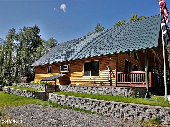 Beautiful home close to sheep creek fishing. Enjoy privacy with this well maintained home. Master bedroom on main level, large kitchen and pantry, oil heat and additional pellet stove. Loft bedroom with full bath, deck, extra side storage. Concrete patio. Generator backup and water softener. Tons of storage space with a walk-in heated crawl space and industrial storage shelving. Gravel parking arelarge yard and borough maintained road year round. There is public access to Sheep Creek and Susitna River with some of the best fishing around.