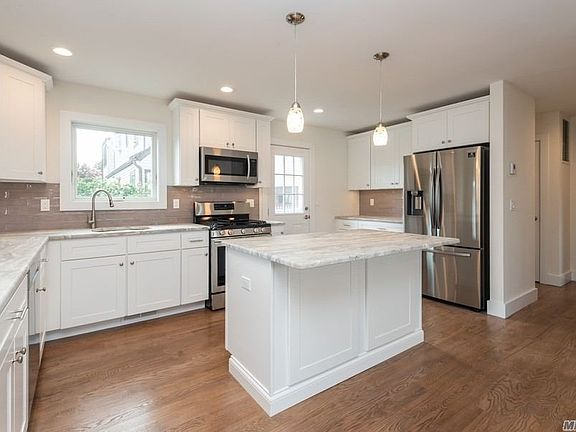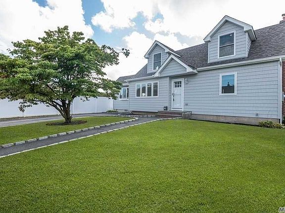 You will instantly fall in love with this turnkey gem! Home awaits in this stunning renovated expanded cape, radiating with designer finishes! Updates include custom kitchen with island, soft close cabinetry, Samsung appliances, under-mount lighting and more, master suite with 2 closets and an en suite master bath, gleaming hardwood floors, family room with lofted ceilings and a skylight, Andersen windows, cedar impression vinyl siding, vinyl fencing, solid wood doors, new central air and heating, updated lighting and 200 amp electric, new roof and gutters, full basement, LG washer and dryer and so much more! Located on a corner lot with sidewalk lined streets, this home is conveniently located near area shopping, the LIRR, south shore beaches and more!