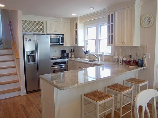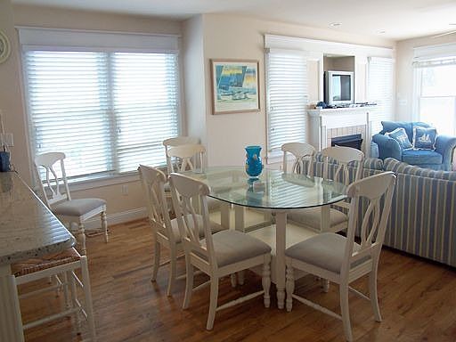 Beautiful corner bayfront townhome offering 5 bedrooms and 4 full baths with southern exposure allowing plenty of natural sunlight and a fabulous setting sun. The upside down design offers a wonderful great room with granite kitchen featuring stainless steel appliances, hardwood floors, and gas fed fireplace. Decks abound on each level so there is plenty of space for both interior as well as exterior living space. The beautiful roof lines give the look of a charming Nantucket home. You will enjoy the dock and boatslip as well as the ample garage storage. Home is being offered fully furnished.