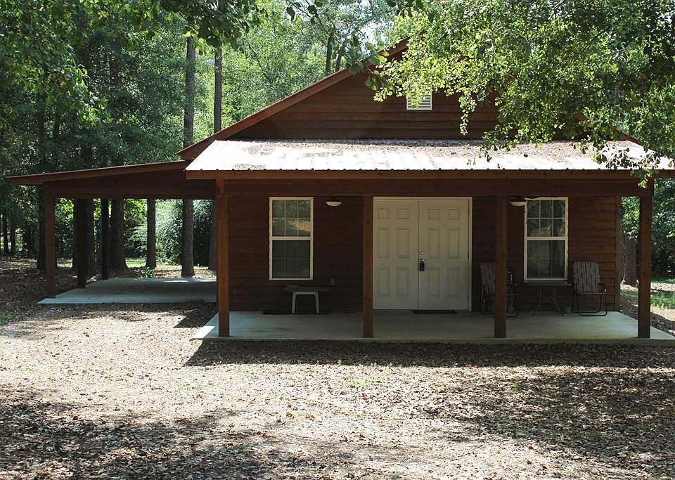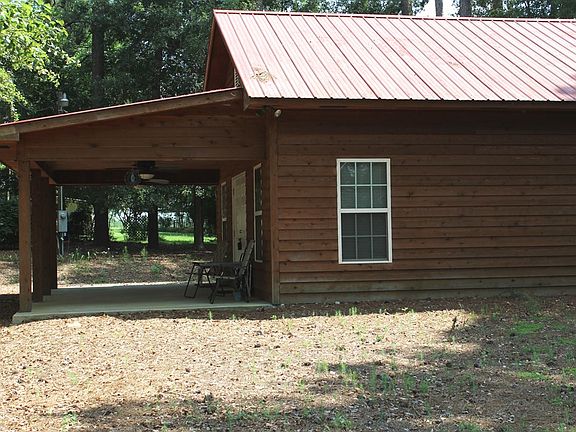 Excellent cabin in the country. Well built with rustic pine planking on 2 acres of grass and pine trees. Metal roof with one car carport and front porch. Interior is finished pine wood with tile floors. Den is open with full kitchen and all appliances. 10 foot ceilings. Central heat and air. A beautiful country location with established landscaping. Like brand new! Come and see!