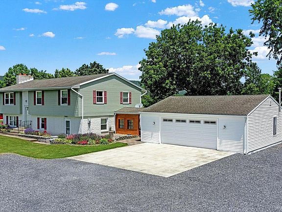 Just off Rich Valley road, this four bedroom home on over a one-acre beautiful country setting with stunning mountain views in Cumberland Valley School District has easy access to the Carlisle Pike and 81! Walking distance to the appalachian trail. Zoning allows some farm animals. VA/FHA Financing! The upper level has an open floor plan with the living room highlighting a large, light brick fireplace with wood mantle. The kitchen has gas cooking, updated counters with a drop in sink and newer laminate flooring. There is access to the covered deck through both the kitchen and the dining room making outdoor dinners and entertaining a breeze! This floor is complete with three bedrooms and one full bath. The lower level has a family room with a Baker stove for supplemental heat, one bedroom, and a large main room with half bath, laundry and mudroom. The outside spaces were designed to appreciate the mountain views whether that’s eating on the covered deck, having coffee on the porch swing on the covered patio or entertaining on the outside patios! Oversized two car garage with plenty of space to use as a workshop with pull down storage. Additional outbuilding with overhead door and attached carport currently used for tractor storage. New roof in 2011. New windows in 2017. This nice home in this great location will go fast.