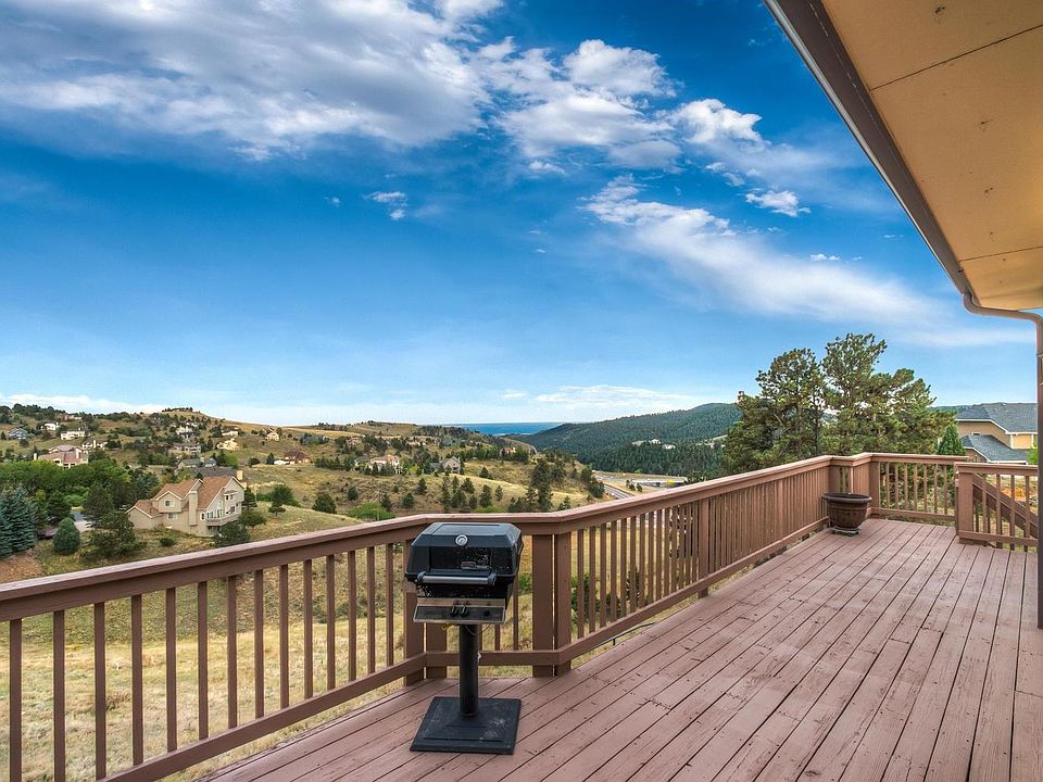 Incredible ranch home with full walk-out basement with outrageous views! Enjoy sweeping views of the city & hills to the east, magnificent city lights at night & sunsets over the mtns to the west. This home is 25 minutes from Union Station while also within running/biking distance to the numerous trails on Lookout Mountain. New windows, floors, fireplace surrounds with new granite & sinks in all bathrooms. Kitchen has brand new range, refrigerator, hood, dishwasher & faucet. Custom reclaimed wood shelves & mantle in living room match side counter top & butler's pantry. Second Master suite downstairs. Furnace with humidifier installed in 2015 & recently serviced. Wraparound deck features built-in grill that connects to gas line, faucet for flowers, phenomenal views. New wet bar & workout room in bsmt. HOA covers snow removal and weed control. Ducts just cleaned! HOA includes road maintenance & weed control.
