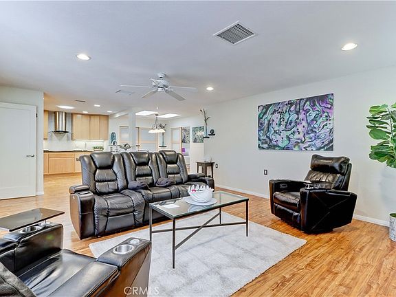 Remodeled and expanded "Madrid" co-op - this home offers many unique features including a large 3rd bedroom/office/studio of approx 260 sq ft with huge amount of closet space. This room was created by enclosing part of the original front patio and variance permit obtained to push out the remaining patio footprint so there is still a good sized, private front area to enjoy with concrete overlay for a stone look, storage closet and planter areas. Walk inside through the beautiful front door with large glass insert and opening side panel. Inside, you'll notice the great upgrades throughout - teak vinyl plank flooring, smooth ceilings, dual pane windows, opening skylights, solar tube, plantation shutters, ceiling fans and 16 SEER central HVAC with germicidal air purifier. The spacious living room has 2 windows and recessed lights. The great room concept extends to an amazing kitchen with features galore - custom maple cabinets with all the bells and whistles, granite countertops, stone backsplash and under cabinet lighting. Stainless appliances include GE profile built-in convection oven plus built-in 5 in 1 Advantium oven/microwave combo mounted above, smooth surface cooktop with multi-ring surface elements & side-by-side french door refrigerator with ice/water dispenser & bottom loading freezer. Interior atrium has been enclosed to create a dining room and features 2 opening skylights plus added storage closets with modern doors. The updated look continues to the smallest of the bedrooms with matching entry barn and closet doors plus 2 additional opening skylights. Large bathroom contains a tiled shower with glass door, stacked front loading washer/dryer, opening skylight, large vanity, built-in triple laundry sorter and added storage space. The bathroom entrance has been relocated so it is not visible from the front door as in the original floorplan. Adjacent primary bedroom space contains additional closet space and small desk created for a sewing space when the closet door is open. The extra room/studio space is located at the front of the home and contains 3 windows, a walk-in closet plus 2 wall closets - so many uses for this versatile room! Walk right down your cul-de-sac to enjoy a beautiful stroll along Serpentine Walkway or pop over to the PAC. ENJOY THE VIRTUAL WALK-THRU TOUR - CLICK ON THE WHITE CIRCLES TO WALK THROUGH, 360 ICON TO WALK OUTSIDE TO VIEW FRONT AND BACK YARD COMMON SPACES AND WALKING PERSON ICON TO COME BACK INSIDE!