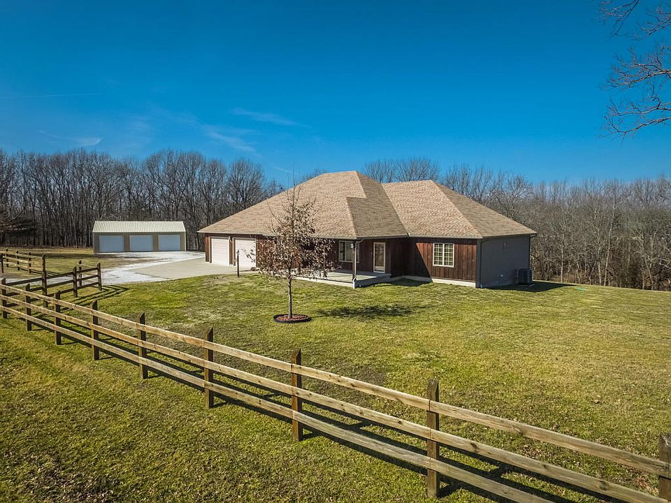 Prepare to be amazed! Comfortable country living in this stunning custom home nestled on 10 rolling, wooded acres. The pride of ownership and the impeccable upkeep of maintenance, makes this home feel like brand new construction. As you walk in, you can't help but notice the spaciousness of the great room and kitchen with high ceilings throughout. This is a 3 bedroom home with a split floor plan, with a partially finished large attic that could be converted to another living area or additional bedrooms. The Master Suite has it's own additional room attached perfect for a seating area/nursery/office, and a massive walk-in closet that will sure to impress with it's own hidden doorway in the floor that accesses the safe room below!