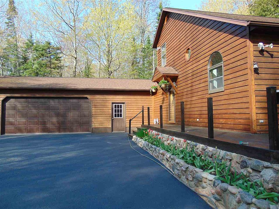 Tucked just off of Co Rd 550 in Marquette, this home feels like the ultimate getaway after a long days work. Its only a few minutes from town, making its location super convenient. Comfortable, slightly rustic and worry free are just a few words that might describe this Northern home. Cathedral ceilings finished in warm wood tones, hardwood and ceramic tile flooring throughout most of the house. Cozy up near the wood stove with its stone hearth and enjoy a good book or just watch the calming waters from the trout creek along with wildlife outside the many windows that encompass the living room. The kitchen is sure to please with lots of white cabinetry, granite counters, a real pantry, breakfast bar for casual seating and a fabulous antler chandelier just above. An updated bathroom with ceramic tile shower, as well as a nice size mudroom just off the entryway. Main floor bedroom is spacious and there are two additional bedrooms upstairs along with an updated second bath. The second floors open feel enables you to enjoy the views of the living area, the outdoors and kitchen below. Glass doors lead you out to a large deck, perfect for summer bbq's and gatherings with friends and family. There isn't a bad view anywhere from this house! Enjoy the outdoor hot tub! Another big plus is the finished family room in the basement, currently being used as a guest room. Laundry area and lots of additional storage space is just off the family room. A large two car garage and paved driveway make winter snow removal a little easier. The outdoor shed is adorable and might even a nice sauna. There is also a lean to for cut wood to be used in the wood stove. So much to enjoy here!! Fish for trout right from your own backyard. This is a DNR designated trout stream! Schedule your appointment today to see this delightful home.