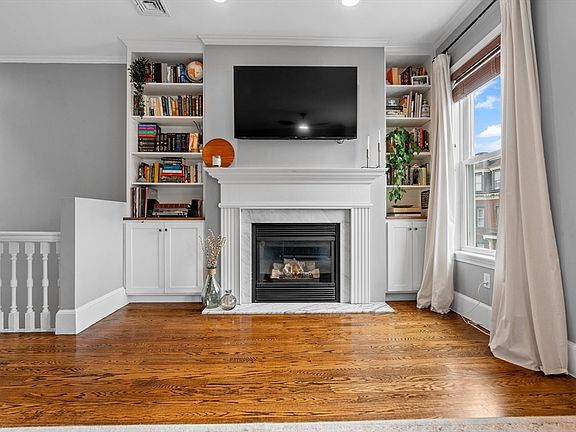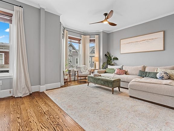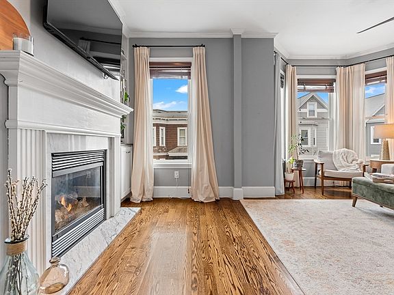 Perched on the top floor of a classic South Boston row home, this beautifully updated 2-bedroom, 1-bath floor-through home offers the perfect blend of charm, functionality, and location. A spacious living room welcomes you with a cozy gas fireplace and a sun-splashed bay window that floods the space with natural light. The recently renovated kitchen features modern finishes, a generous pantry, and a rare full dining area - an exceptional find in Southie. Just off the kitchen, enjoy seamless indoor-outdoor living with a large private deck, ideal for entertaining or relaxing. Both bedrooms comfortably accommodate queen-size beds, and the unit boasts incredible storage throughout. Tucked away on the desirable east side, this home also includes coveted roof rights, offering exciting potential for future expansion or a private roof deck. Ask agent about all the updates!