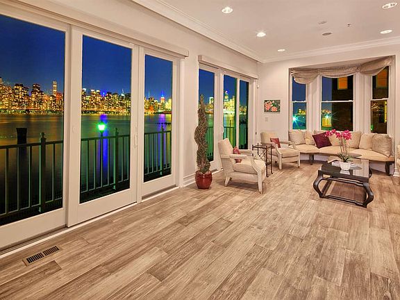 Spectacular Jacobs Ferry waterfront, southeast corner town home. Dramatic home flooded with light from multiple windows. Sweeping NYC and Hudson views from!! Just fully renovated with stunning new upgrades. Brand new Portuguese Fernandina Beach wide plank hickory flooring throughout. Three bedrooms. Three full; two half baths. Private elevator. Brand new Anderson windows & doors throughout. Designer kitchen with quartz counter tops, stainless steel appliances, (Subzero fridge, Miele dishwasher, Thermodor oven & stove). Custom window treatments. Wired for surround sound. Central vacuum. Alarm. Washer/dryer moved to hallway by bedrooms. Sumptuous, newly renovated master bathroom with oversized glass enclosed shower, porcelain tiles and double sink. Dramatic loft area with full bath, custom Murphy Bed and outdoor deck. Parking for two cars; one in garage and one in driveway. Community features two pools with jacuzzis, tot lot, waterfront promenade and free shuttle to ferry. Steps to 158 bus to NYC. Close to restaurants and shopping.