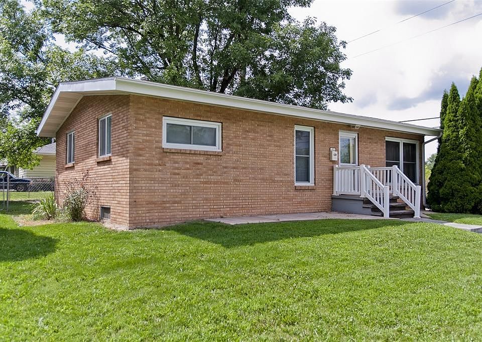 Brick ranch with vaulted ceilings, master bedroom with 1/2 bath, hardwood floors, and fenced yard.