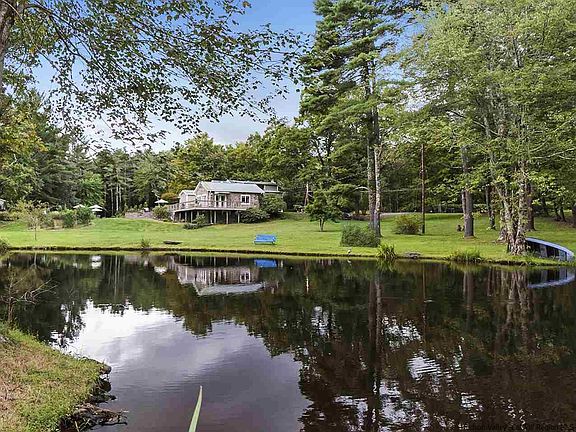 Once you arrive you will NEVER have to leave this superbly constructed, "all inclusive" compound that features a heated in ground saline pool, regulation tennis court, hot tub, and spring fed koi pond. Very private, renovated and expansive property on 19.5 acres features a total of four bedrooms and 5 baths. Wide plank flooring and beamed ceilings with large stone fireplace for winter entertaining. Large windowed master suite with access to deck, hot tub and pool. Gourmet kitchen with custom cherry cabinetry and pantry, Garland stove, and Traulsen refrigerator and freezer. Private studio set apart from the main house for an artist, guests, or AirBnB with kitchenette, bathroom, and gas fireplace. Stone terracing and mature gardens surrounds the house and pool. Organic vegetable gardens and fruit trees with an abundance of room for more. Bonus office/bedroom/game room with a separate entrance for privacy features a full bath for additional guest space. And an extra out building/3 stall barn with electric and water ready for your own imagination (maybe a horse?). 90% fenced. Underground dog fence. Garden drip system. Home security system. Minutes to Woodstock and Saugerties, Woodstock Golf Club. HITS, Green Heron Riding Stables, and Woodstock Day School - but you will never WANT to leave!