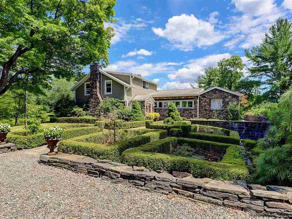Rarely does such an outstanding Woodstock estate come on the market, featuring its own tennis court, swimming pool, pond, three-stall horse barn and fantastic studio guest house with full bathroom and kitchenette! The 19+ acres set on lovely John Joy Road is everyone's dream of an Upstate farm property. There are large open meadows as well as private wooded areas filled with ferns. Around the house are manicured gardens with perennials. The heated saline swimming pool surrounded by a bluestone patio is Shangri-La. This delightful pool has a natural sitting stone at one end, which doubles as a fountain. Tennis aficionados will attest this is a gorgeous tennis court--regulation size and fenced by a hedge of flowering hydrangeas. You will feel like a star under the blue canvas cabana while cooling down after a killer match. Once an 1800s working farm, the original part of the house was likely built back then and added onto over the years giving a more contemporary classic feel to the interior with some antique features throughout. The exterior is cedar-sided with excellent stone craftsmanship. The classic and spacious living room has a working stone fireplace adorned with a wooden mantel and a wall of shelving. It was the oldest part of the house and has hand hewn beams in the ceiling. The sunroom is the heart of the house with sliding doors to the stone patio overlooking the pool and landscaped terraces. The dining room can be approached from the living room, the kitchen or the sunroom making it a central destination. The gourmet kitchen with custom cabinets and plenty of storage throughout is roomy and practical. The side-door entry into the kitchen is ideal for bringing in groceries. The main bedroom suite is perfectly situated with views of the pond and sloping meadow surrounded by a deck accessed by two full glass doors. This bedroom suite is separated from the main part of the house by Dutch doors with antique hardware leading to a walk-in closet and en-suite bathroom. The bedroom suite includes a nice-sized sitting area and built-in closets. The deck encircling this area covers the back side of the house and includes a secluded sunken hot tub. There is a laundry room and guest bathroom easily accessed from the deck as well. Upstairs you will find two bedrooms, a full bathroom and a deep linen closet. In total, the main house has 3 bedrooms and 3 full bathrooms. There is also a private office and full bathroom in what could be called a finished basement with its own separate exterior entrance. The studio guest house, tucked away beyond the swimming pool and set near the rustic horse barn, is a modern departure from the classic house. Its high ceiling and wall of windows let in tons of light. It's a perfect getaway from the main house and suitable for year-round living. With a kitchenette, full bathroom and the added ambiance of a gas-lit fireplace, you may want your guests to stay in the main house while you sleep out here! This part of the property has a more remote, middle-of-nowhere feel to it with big open sky and rolling hills. This premier Woodstock property is a must-see.